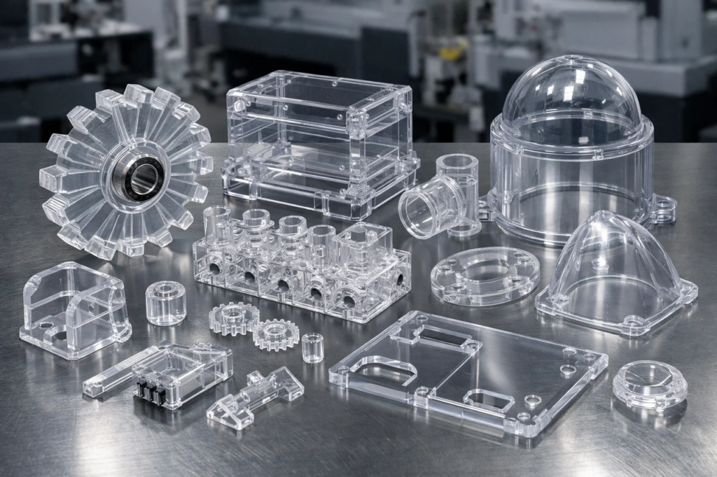 Не менее востребованы корпусные и декоративно-функциональные элементы. Это могут быть части торговых стоек, витринные вставки, детали рекламных конструкций, прозрачные панели для шкафов, крышки для оборудования и другие изделия, которые одновременно выполняют защитную и визуальную функцию.